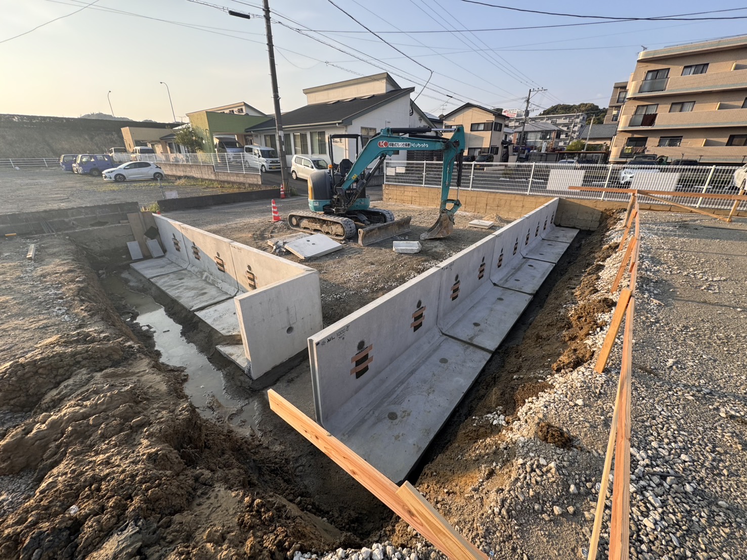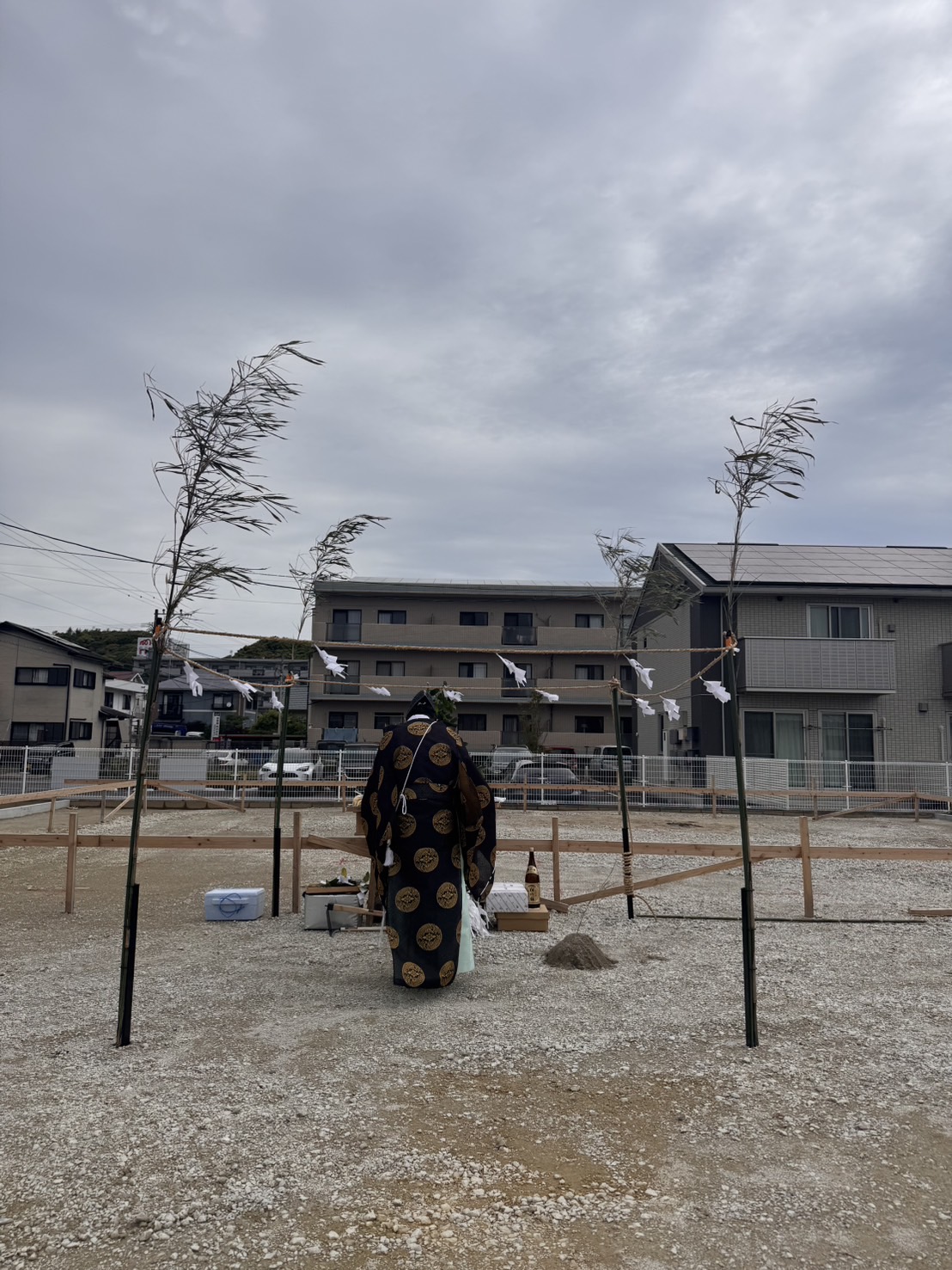 詳細:お客様と一緒に地鎮祭を行い建築工事の開始を神様に報告し、その後擁壁工事を行いました。